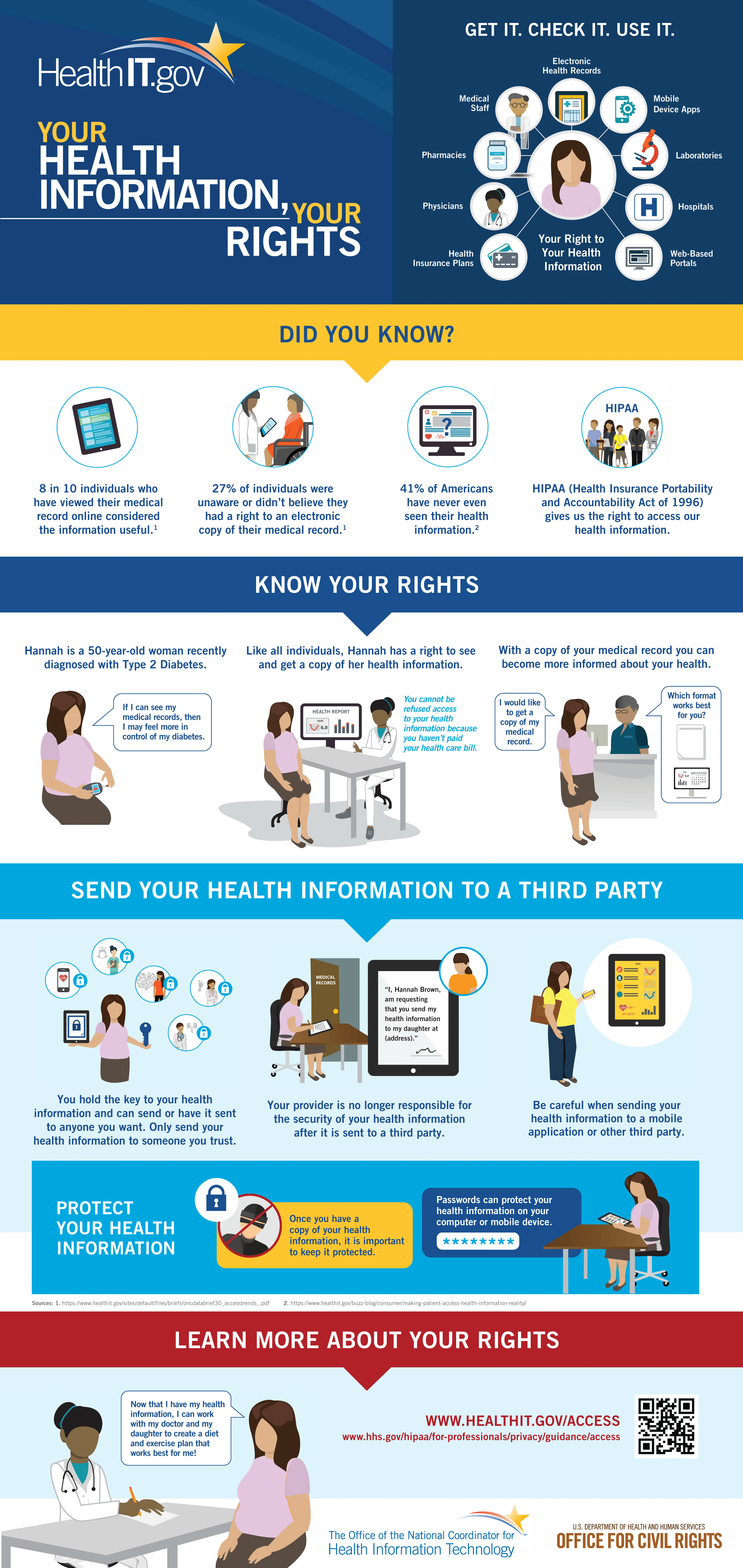 When I found out I’d be speaking with you all today – I knew that I could not pass up on the opportunity to share these resources with you. You all play such a critical role in informing the public on a wide range of issues. I encourage you to visit HealthIT.gov/Access to learn more about your readers’ right to their health data and help us dispel with the myth that Americans do not have the right to access to their health information and to send it where they wish—from a family member to an app.