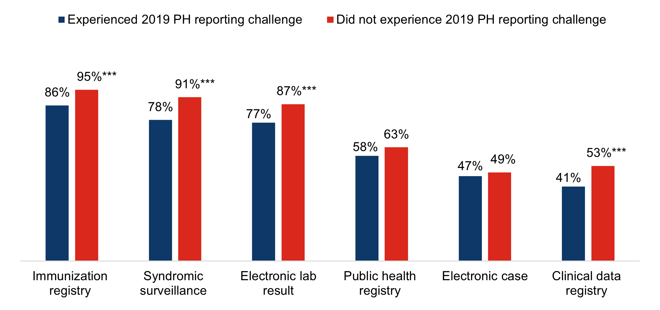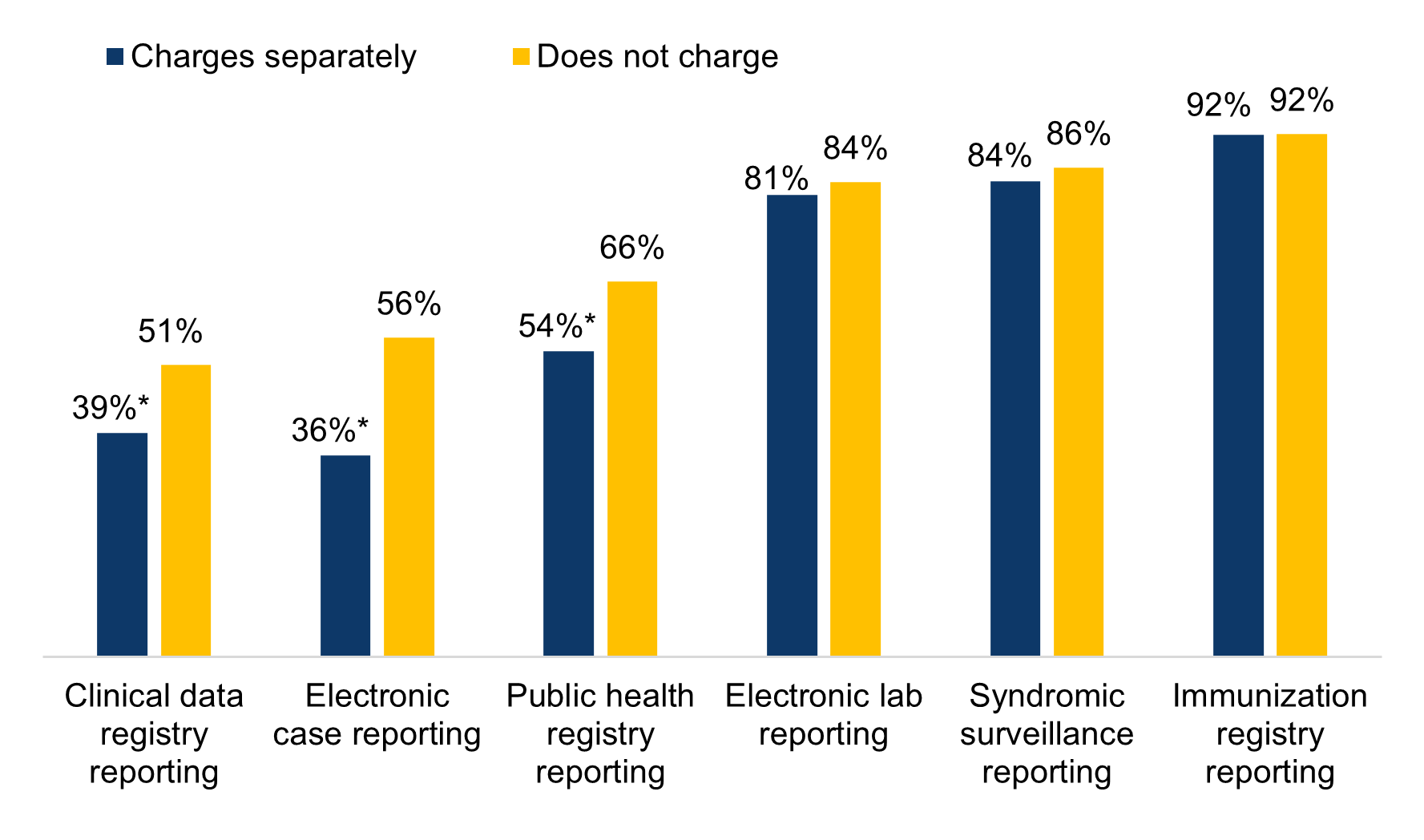 | Public health registry reporting | 82% | 71%* | 39%* |