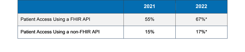 Figure 2: Percent of hospitals that reported using APIs to enable patient access and submit patient-generated data to apps, 2021-2022
