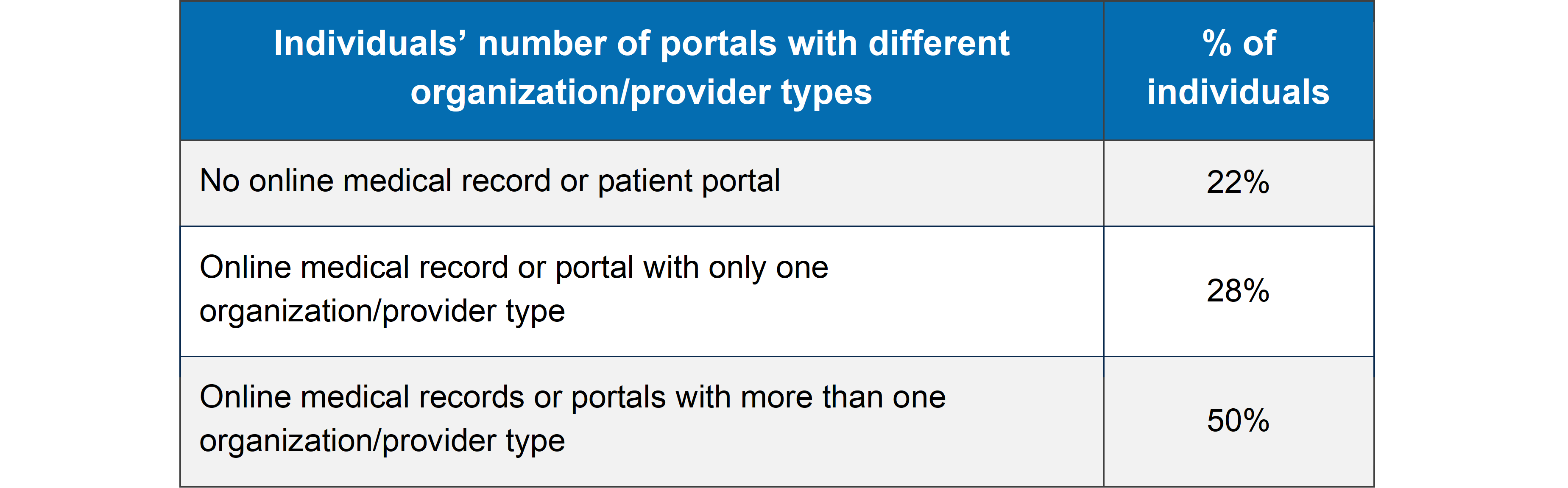 Appendix Table A2: Number of organizations/provider types with which individuals have an online medical record or patient portal, 2022.