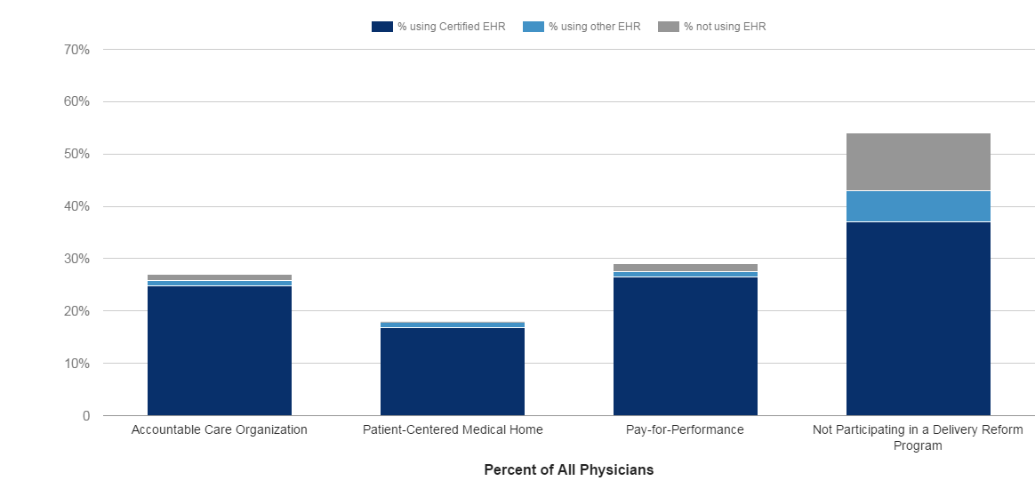 Office of the National Coordinator for Health Information Technology. ‘Electronic Health Record Use among Physicians Participating in Delivery Reform Programs,’ Health IT Quick-Stat #33. https://www.healthit.gov/data/quickstats/electronic-health-record-use-among-physicians-participating-delivery-reform. December 2016.