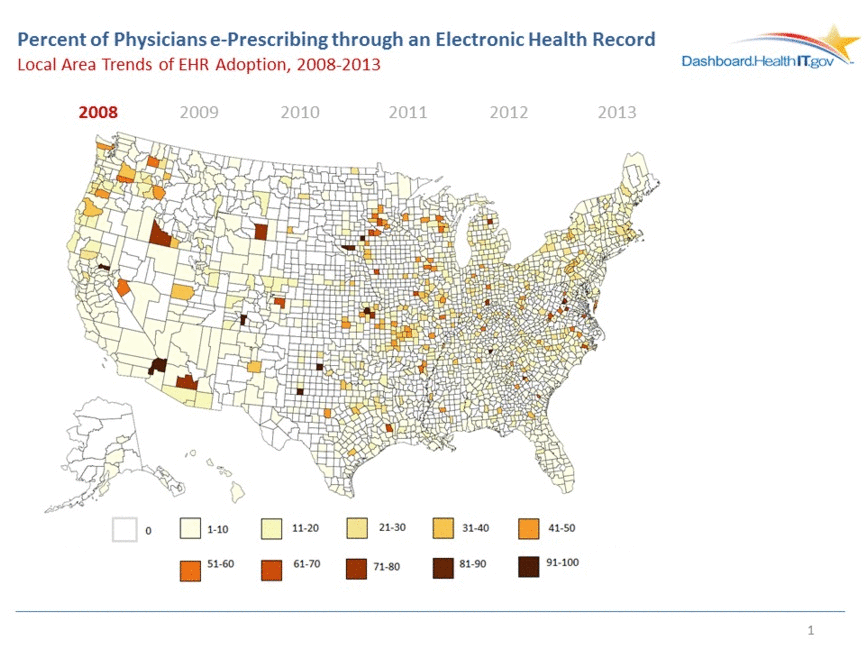 In the past five years, physician Electronic Health Record (EHR) adoption has surged, reaching all corners of the country. The percentage of physicians e-Prescribing via an EHR has accelerated from 7 percent in December 2008 to 66 percent as of December 2013.